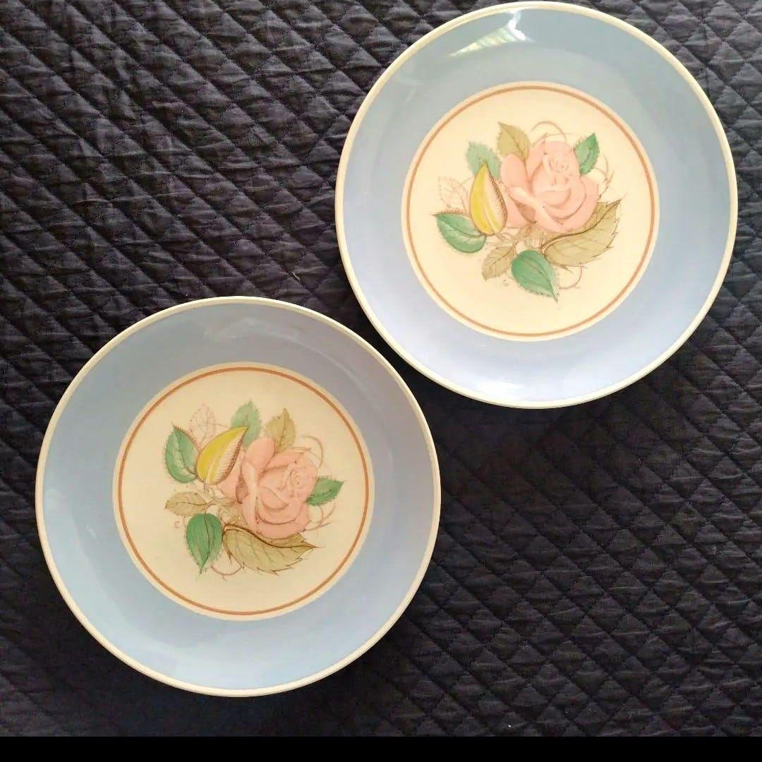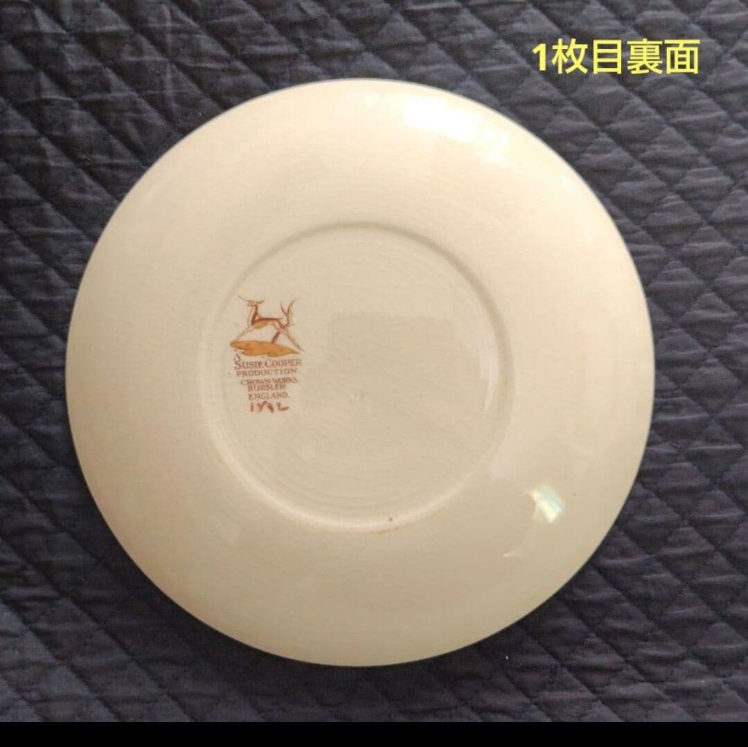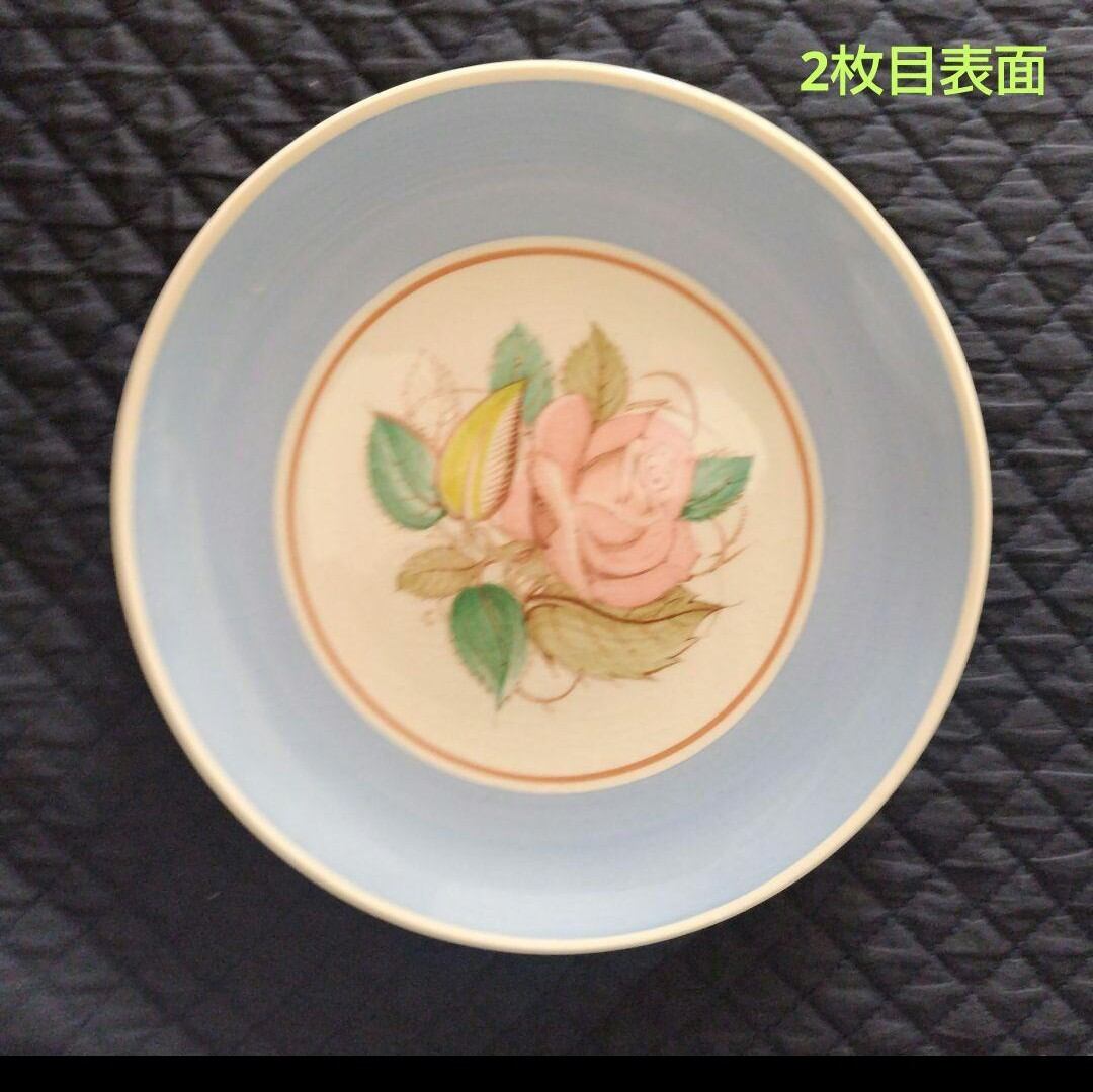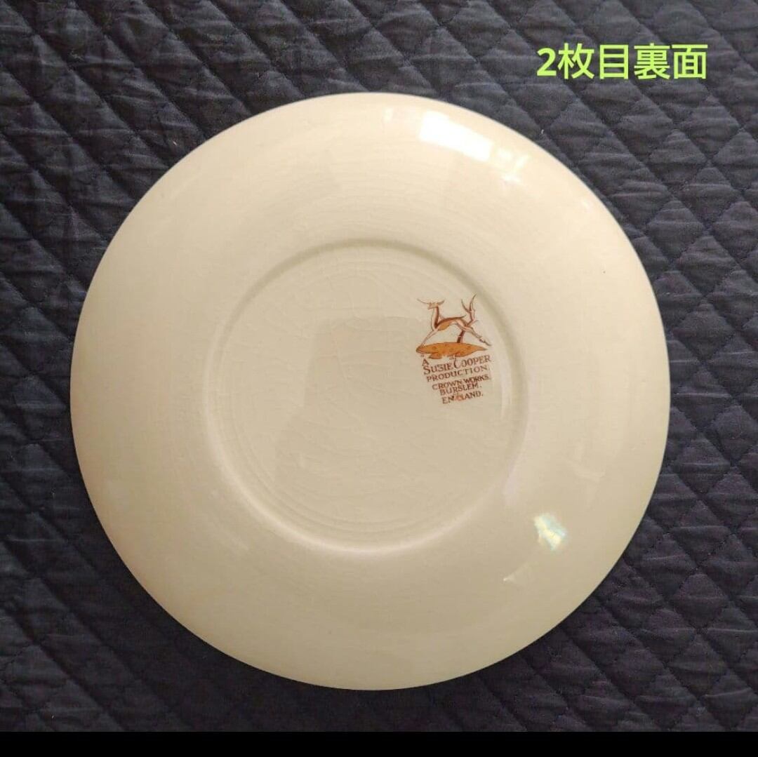 英国の陶芸家スージークーパーの直径22cmの「パトリシアローズ」のプレート2枚セットです。解説書にはサンドウィッチプレートと書かれていることがありますが、直径22cmの使い勝手の良い大きさで、使い道は自由です。