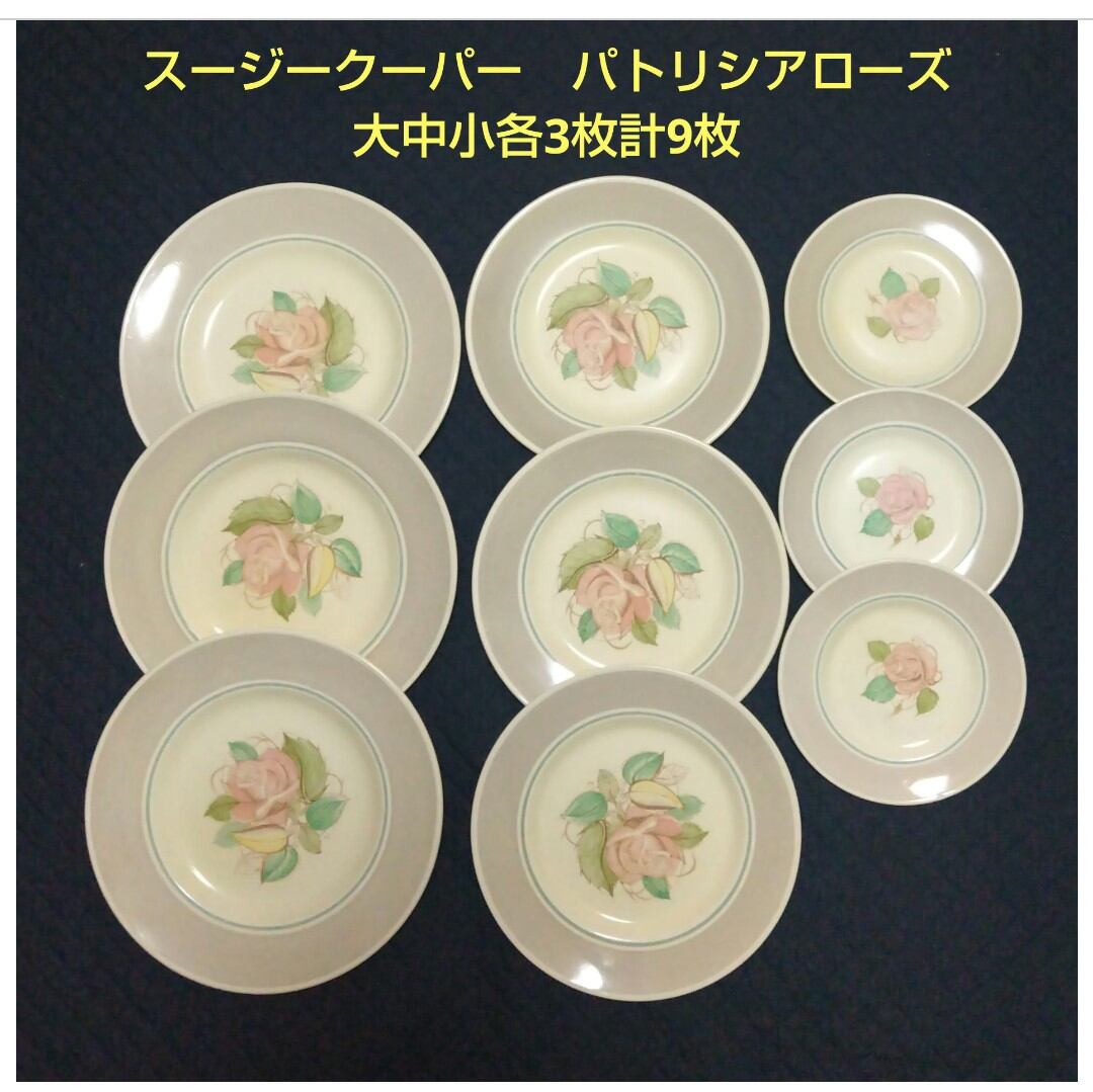 英国陶芸家(デザイナー)スージークーパー の「パトリシアローズ」のプレート9枚セットです。内訳は直径17.5cm3枚、23cm3枚、25cm3枚の計9枚です。