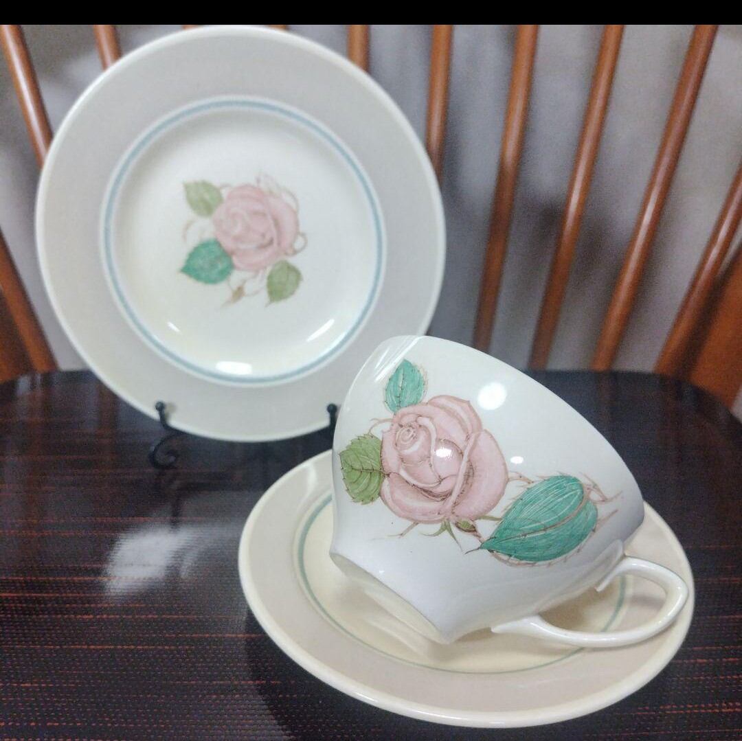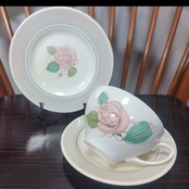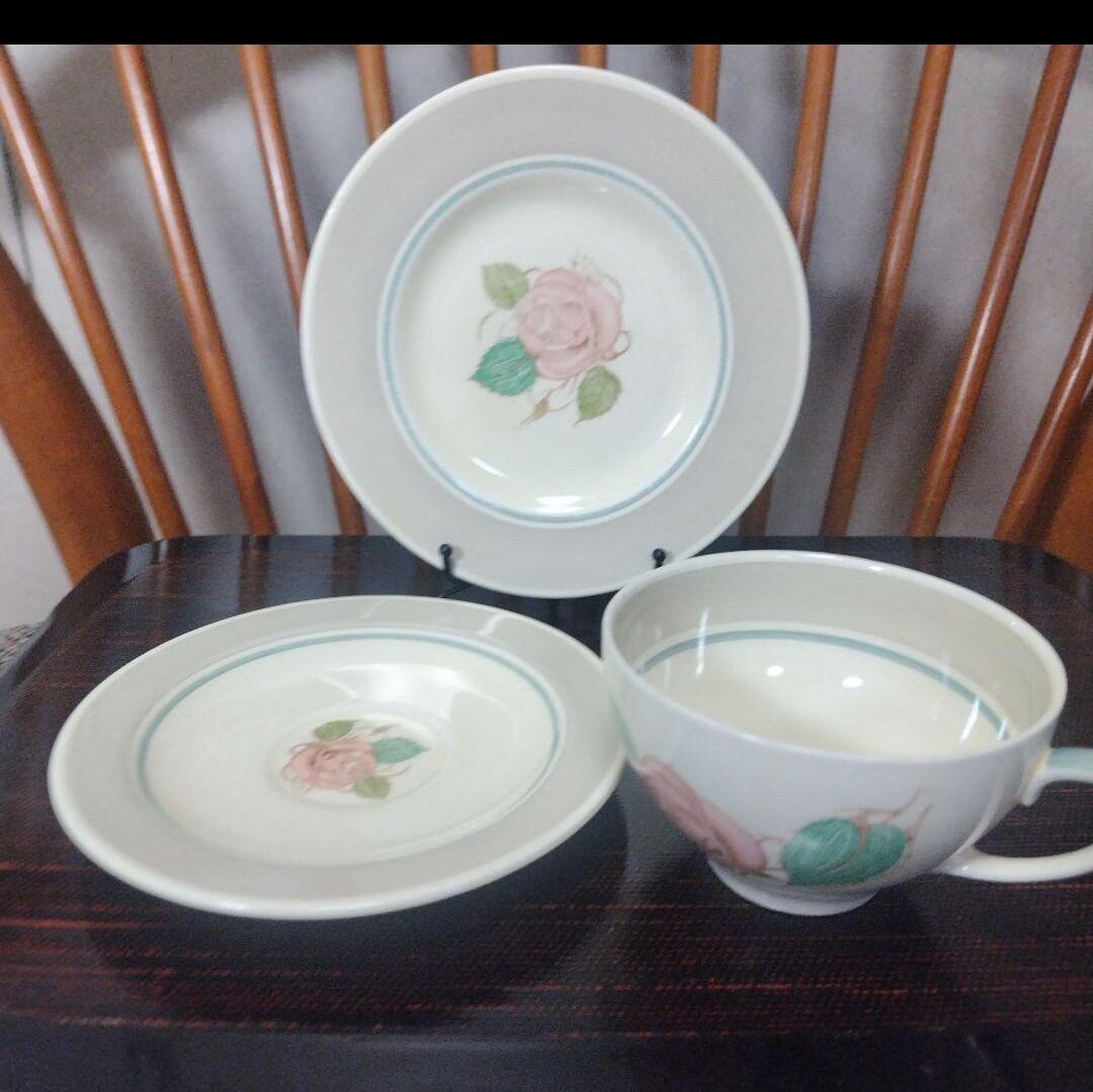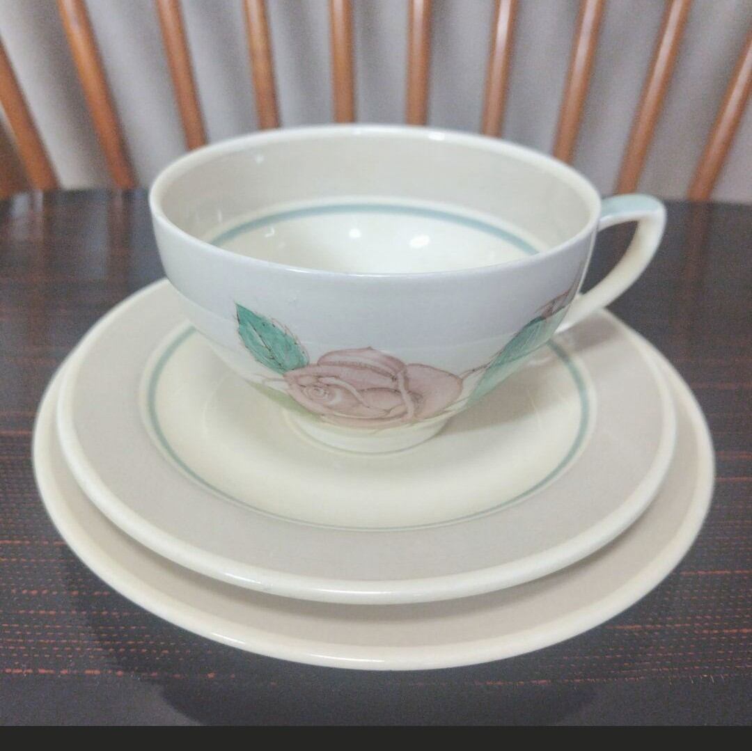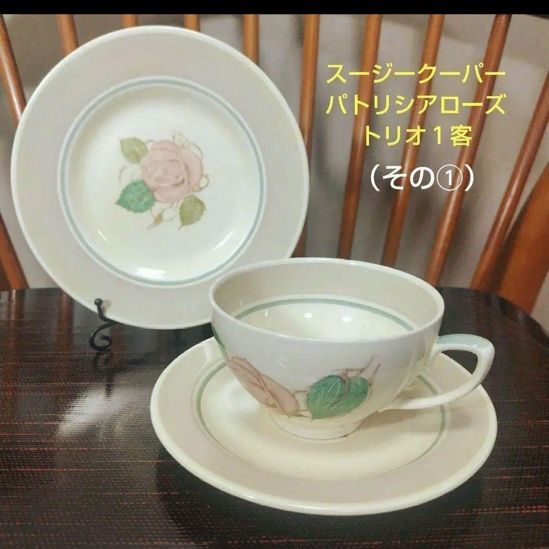 英国陶芸家(デザイナー)スージークーパー の「パトリシアローズ」のトリオ(カップ&ソーサー、サイドプレート)です。