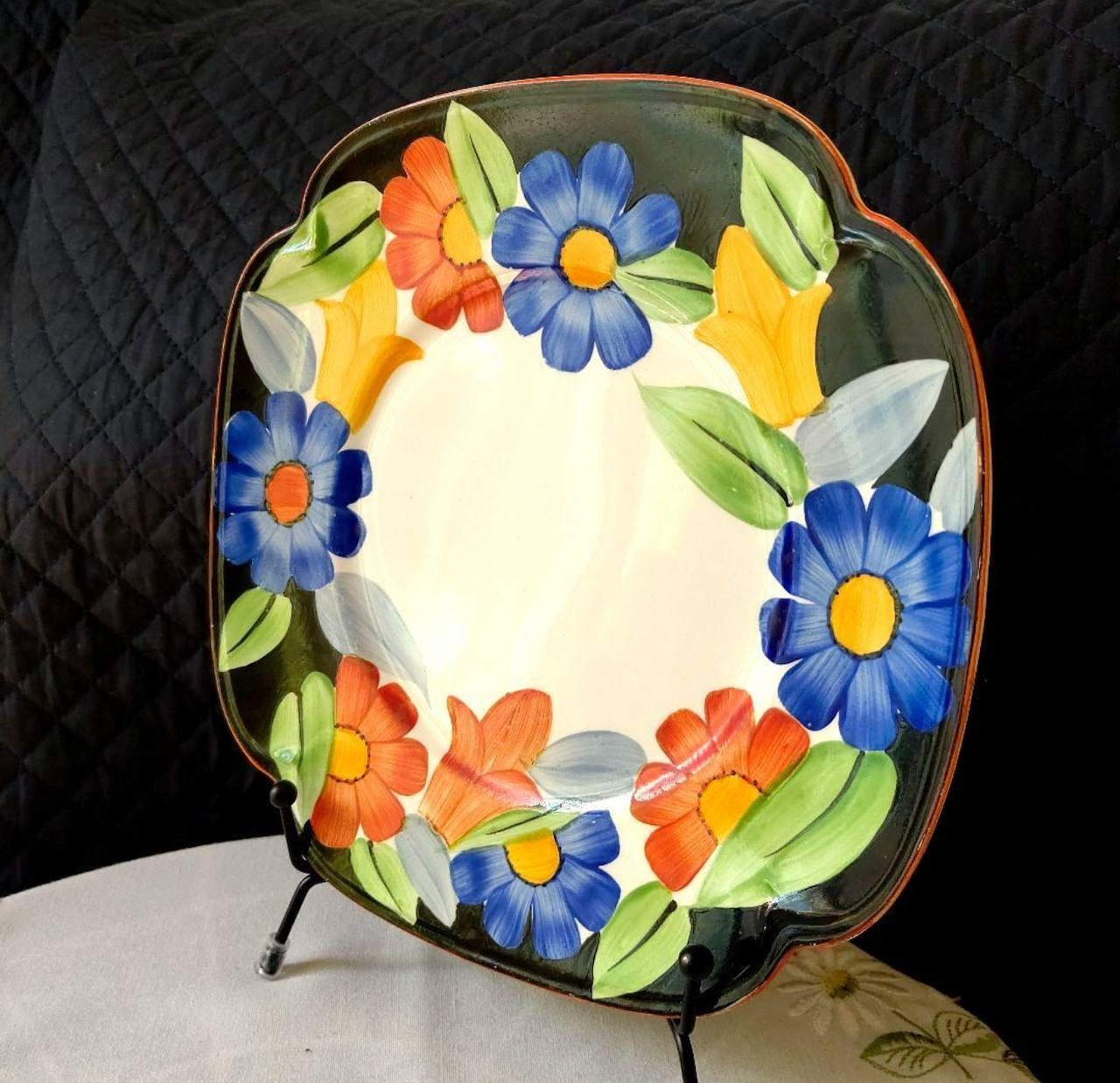 英国陶芸家(兼デザイナー)のスージークーパーの作品、グレイ社時代の美しいフローラル柄のプレートです。