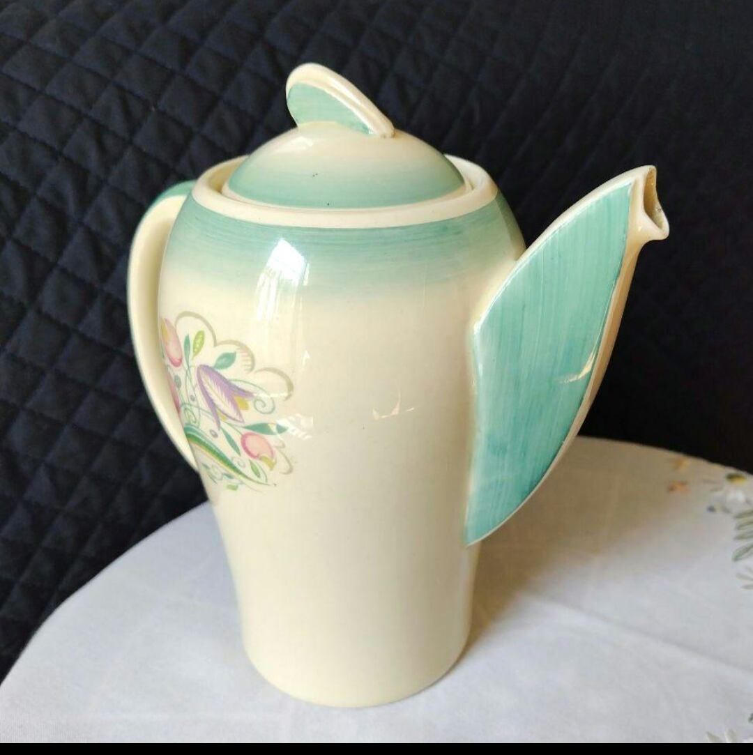 英国陶芸家(デザイナー)のスージークーパー女史の作品、「ドレスデンスプレイ」縦長ケストレル・シェイプの大きめのポットです。