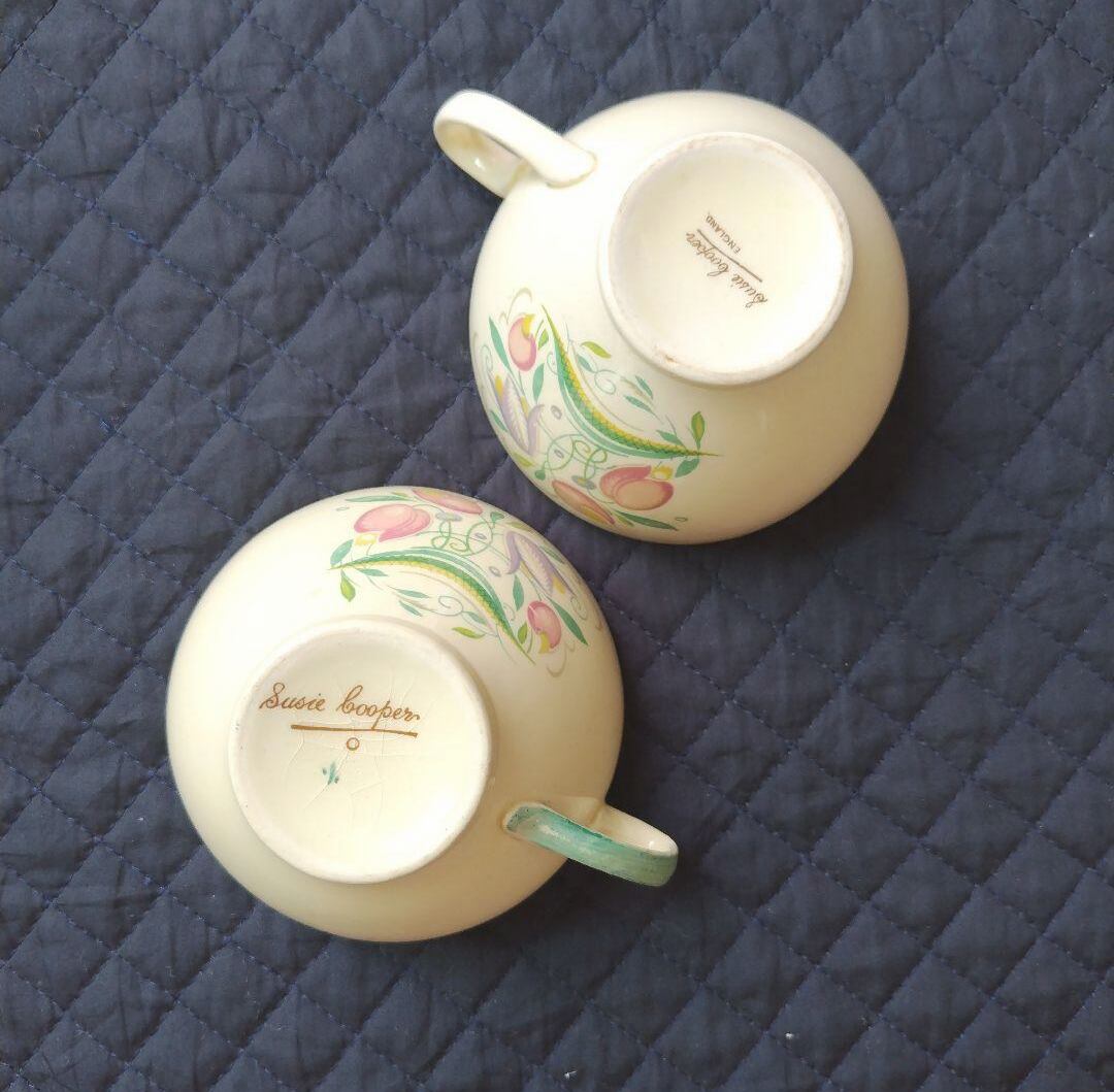 英国陶芸家スージークーパーの「ドレスデンスプレイ」カップ&ソーサーの2客セットです。