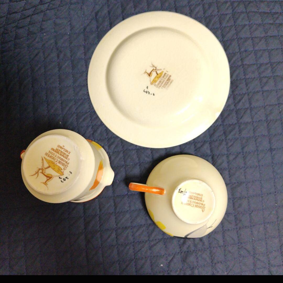 【SOLD OUT】スージークーパー、アールデコの手書きカップ&ジャグ&プレートの3点セット