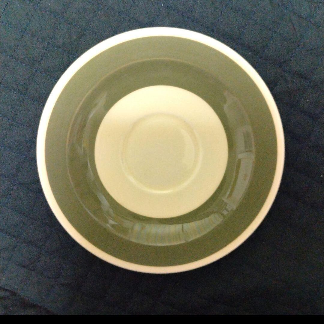英国陶芸家(デザイナー)のスージークーパーの作品。人気のある「ファーンダウン」のトリオ(カップ&ソーサー、プレート)のセットです。